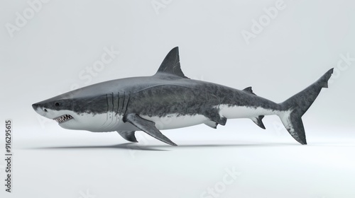 © paper later, Obraz premium Great White Shark Swimming Against White Background