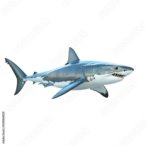 © Glowart Png, Obraz premium Great White Shark Swimming Forward Isolated on Transparent Background