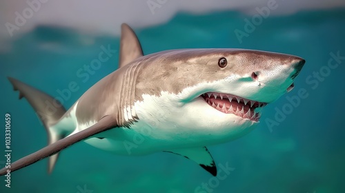 Naklejka premium Great White Shark Swimming in Ocean Water Predator Wildlife Marine Life
