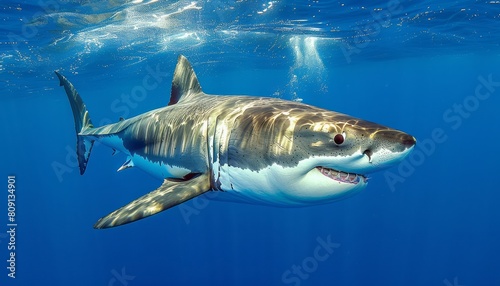 Fototapeta premium Great White Shark Swimming in the Ocean