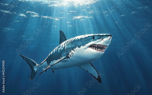 © kenza07, Fototapeta premium Great White Shark Swimming in the Ocean