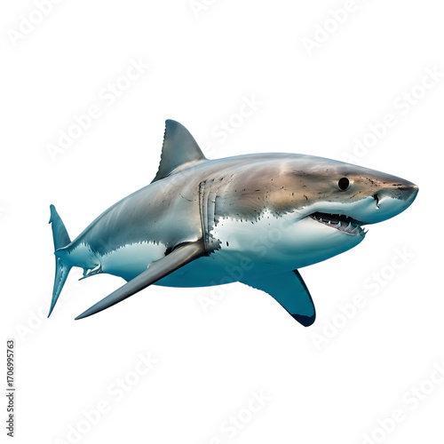Fototapeta premium Great white shark swimming isolated on transparent background
