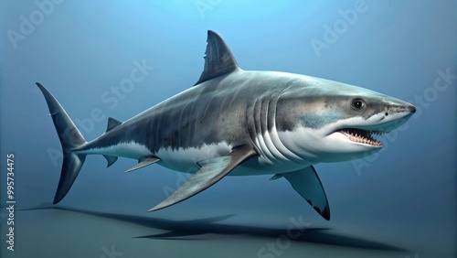 Fototapeta premium Great white shark swimming peacefully in the deep blue water