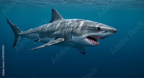 © Abdul, Fototapeta premium Great White Shark Swimming Underwater in the Ocean