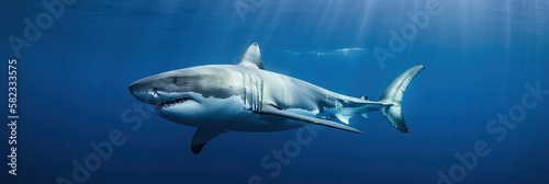 © Brian, Fototapeta premium great white shark swimming underwater in the ocean