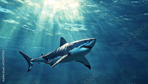 © adobestocker1, Fototapeta premium Great White Shark Underwater