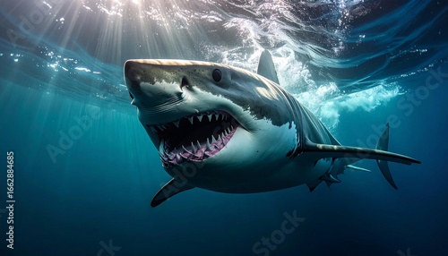 © yanti, Fototapeta premium Great White Shark Underwater Closeup