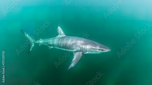© Dede, Fototapeta premium Great White Shark Underwater, Green Water