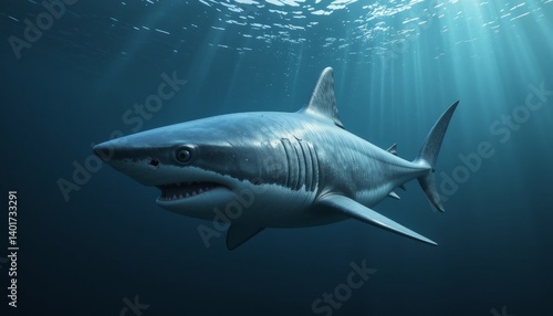 Fototapeta premium Great White Shark Underwater in Pixel Art Style