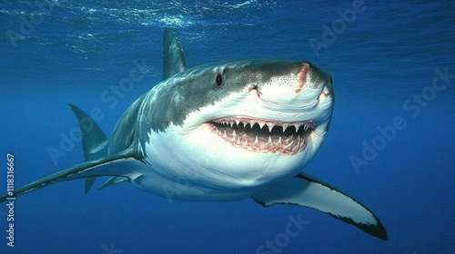 Naklejka premium Great White Shark Underwater Majestic Predator
