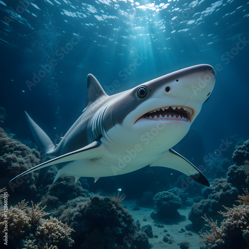Naklejka premium Great White Shark Underwater Predator