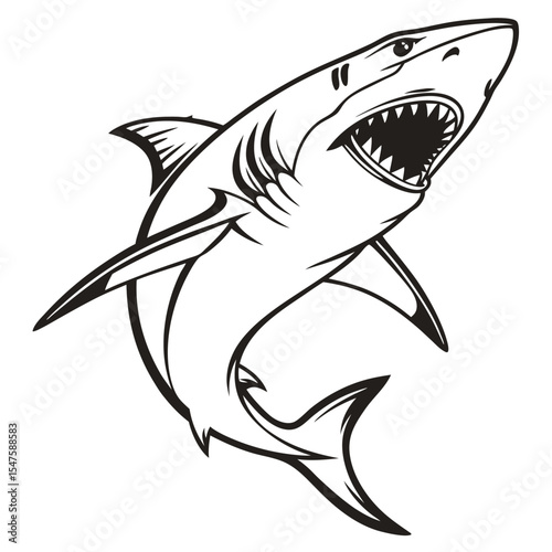 Fototapeta premium Great White Shark Vector Illustration Black and White Open Mouth