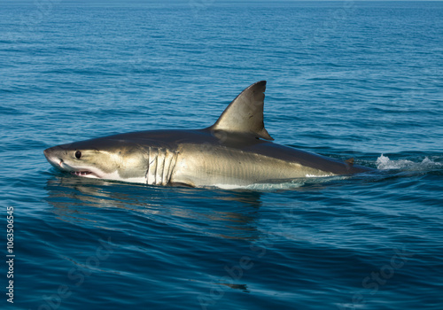 Fototapeta premium Great white sharks are one of the largest predatory fish in the world. On the water