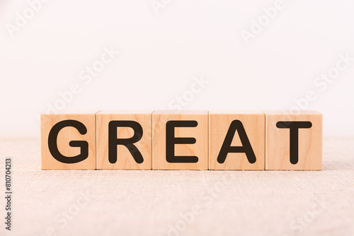 Fototapeta premium GREAT word concept written on a light table and light background
