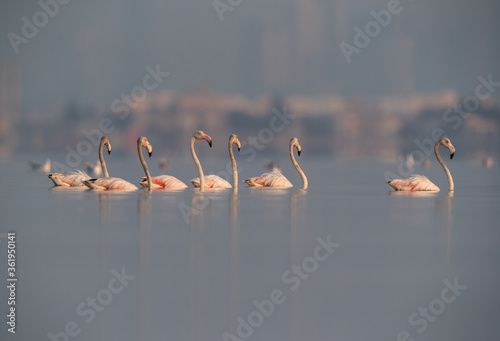 © Dr Ajay Kumar Singh, Fototapeta premium Greater Flamingos at Eker coast, Bahrain