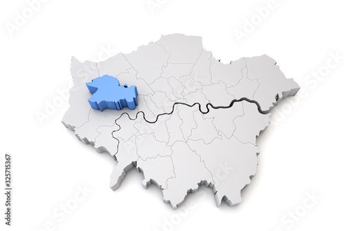 Fototapeta premium Greater London map showing Ealing borough in blue. 3D Rendering