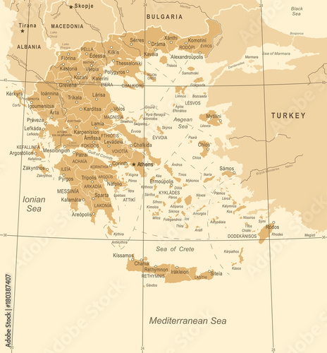 Obraz premium Greece Map - Vintage Vector Illustration