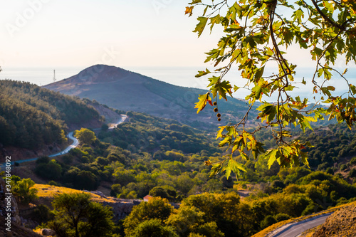 © juliaggmm, Fototapeta premium Greece mountain summer Green tree road