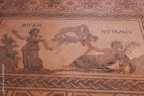 Obraz premium Greek art mosaics on the floor, ruins in Paphos. Cyprus 2017