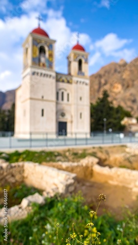 © Yoga, Fototapeta premium Greek Church Ruins Blurry View