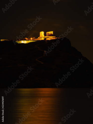 Obraz premium Greek temple of Poseidon at night, Cape Sounio
