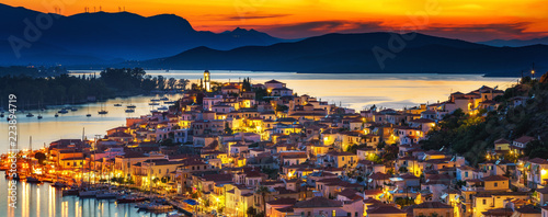 © sborisov, Fototapeta premium Greek town Poros at night, Greece