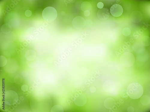 Fototapeta premium Green abstract bokeh background. Nature blurred backdrop with lights. Vector eps 10.