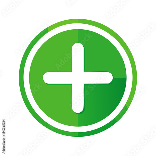 Obraz premium Green Add Icon with White Plus Sign Symbol in a Circle for Web Design and...