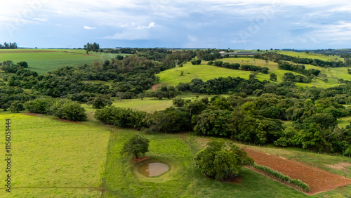 © EDBS, Obraz premium green aerial landscape with hills and trees