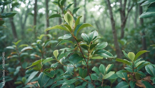 © Lasvu, Fototapeta premium Green Albizia Leaves In The Forest Close Up with Empty Space for Text