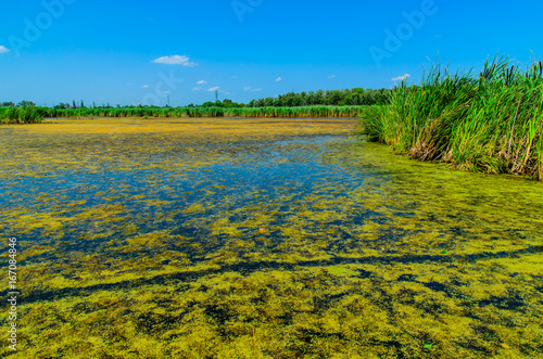 © ihorbondarenko, Fototapeta premium Green algae on surface of the lake