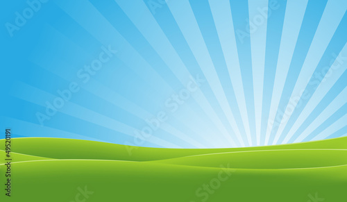 © benchart, Obraz premium Green And Blue Landscape