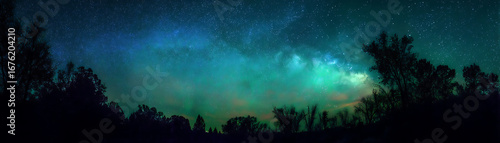 © Sumonrat, Fototapeta premium Green and blue lights in the vast, starry night sky