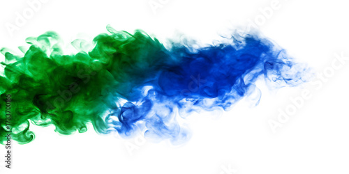 © Tanzina, Fototapeta premium Green and blue smoke swirling on white background isolated on a transparent background