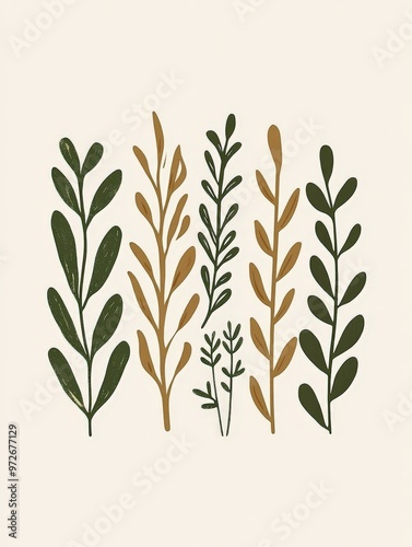 Fototapeta premium Green and Brown Floral Illustration.