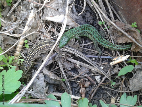 Fototapeta premium green and gray lizards