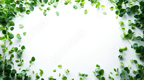 Fototapeta premium green and light green confetti: a fresh frame made from green and light green confetti, playfully scattered around a soft white background, the vibrant greens create an energetic and natural border