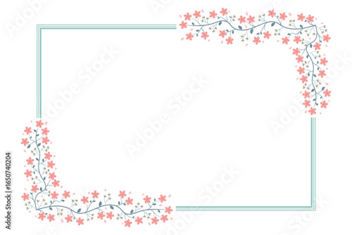 Obraz premium Green And Peach Rectangular Floral Border Frame With Cherry Blossoms