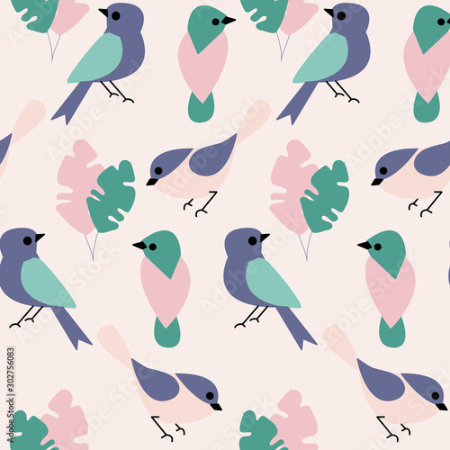 Fototapeta premium Green and pink teacups and birds