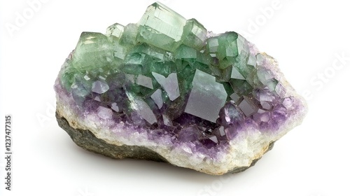 Fototapeta premium Green And Purple Fluorite Crystal Cluster On Amethyst Base