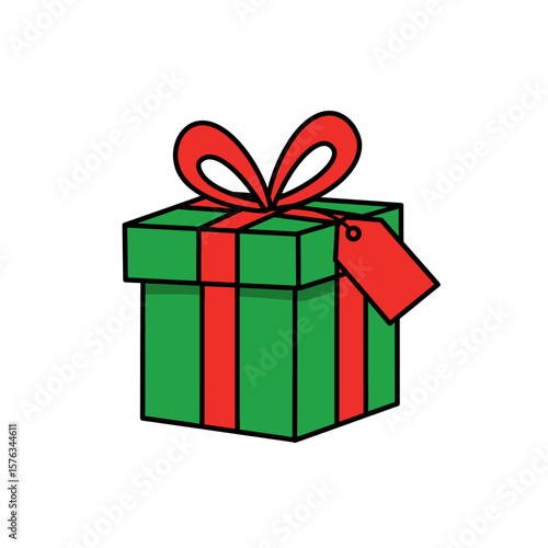 Obraz premium Green and Red Christmas Present Icon Tag Bold Black Outline Simple Design