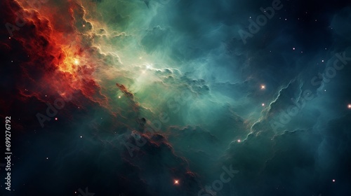 Obraz premium Green and red color tones of outer space galaxy, supernova nebula background
