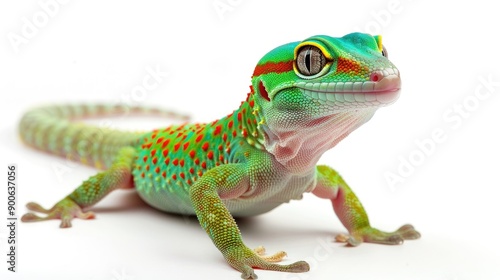 © Ariep, Fototapeta premium Green and Red Crested Gecko with White Background