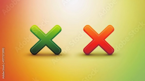 Obraz premium Green and Red Cross Marks: Choice, Decision, Correct and Incorrect