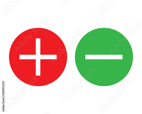 © Hello , Obraz premium Green and red round plus minus icon vector illustration design on white background.