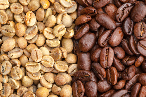 © Pumba, Fototapeta premium Green and roasted coffee beans