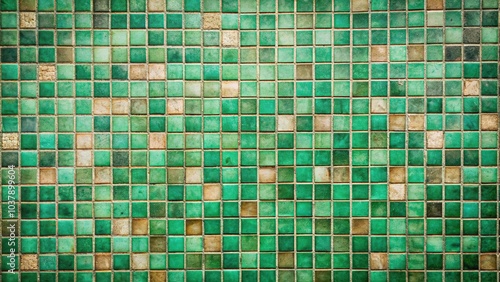 © beng, Fototapeta premium green and teal vintage tiles background with low angle view