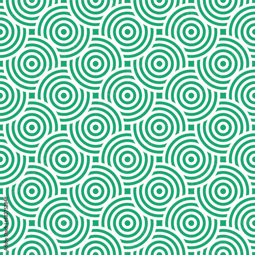 Fototapeta premium Green and white seamless japanese style intersecting circles spiral pattern