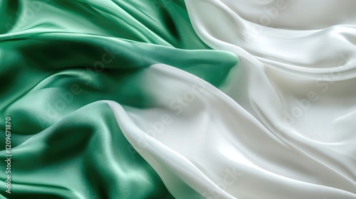 Fototapeta premium Green and white silk fabric texture flowing smooth for elegant fashion and design background collections