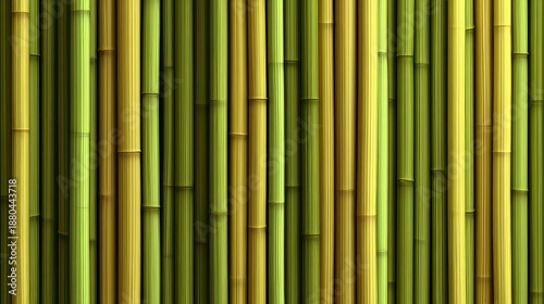 Fototapeta premium Green and Yellow Bamboo Stalks Arranged Vertically Creating a Natural Texture Wall with Subtle Light Variations Forming Linear Patterns